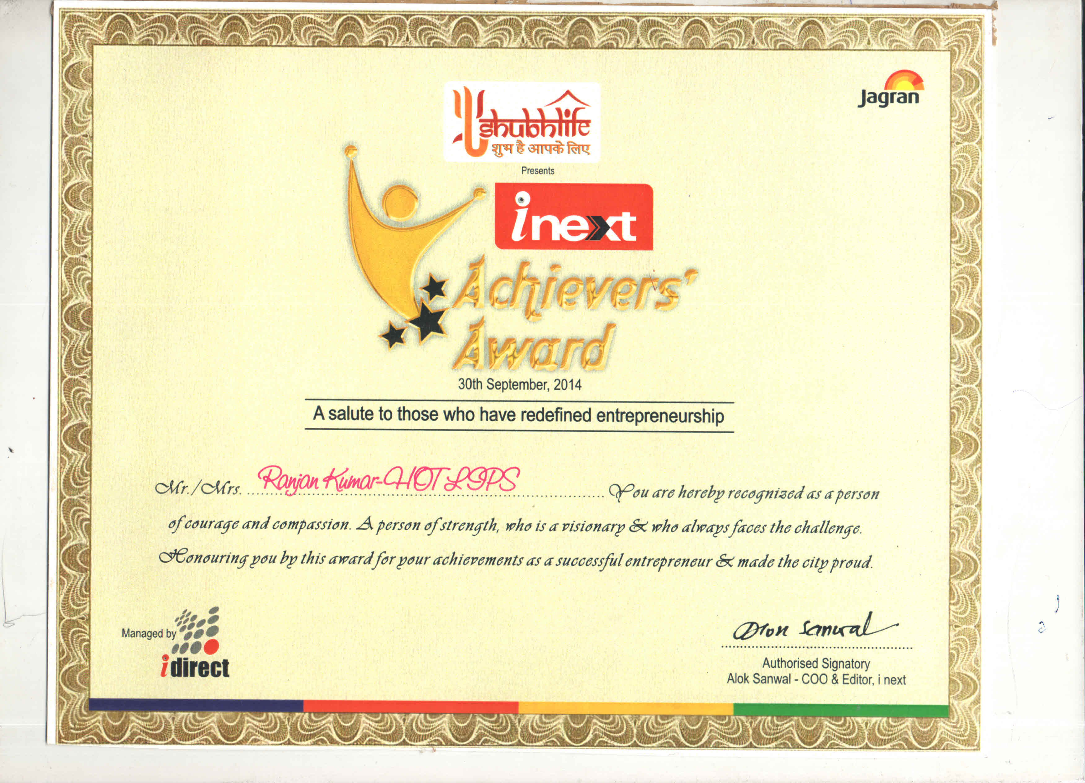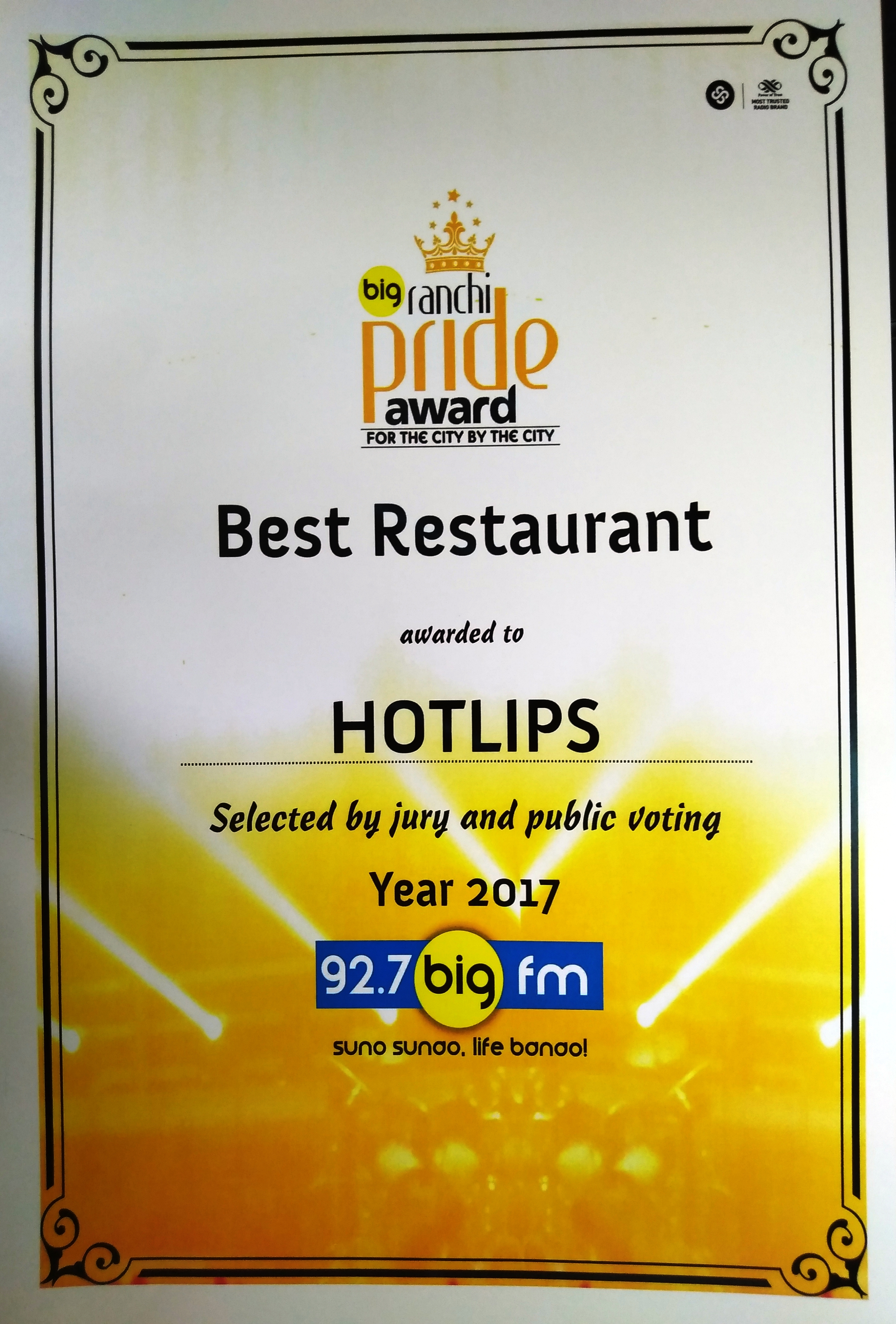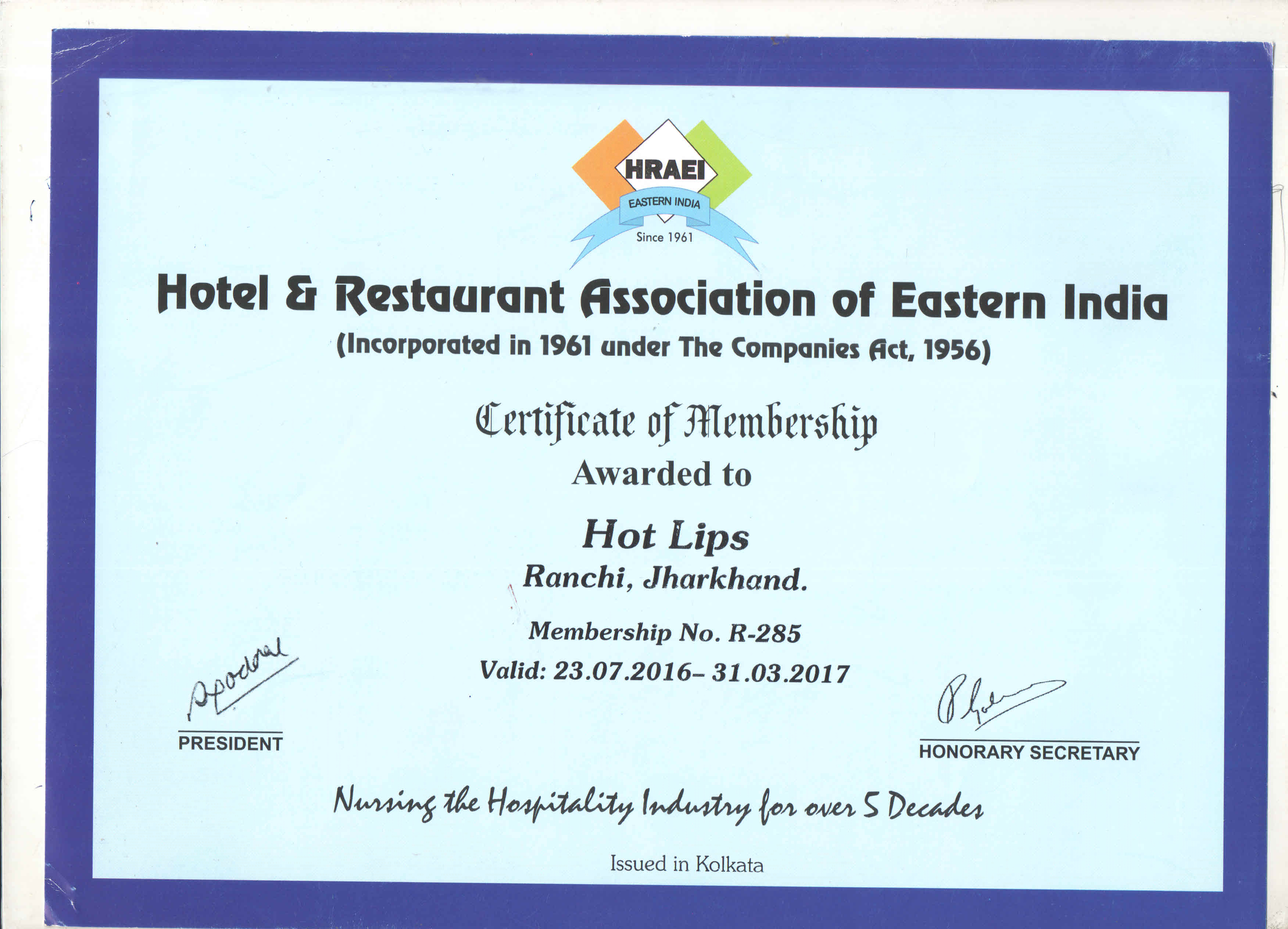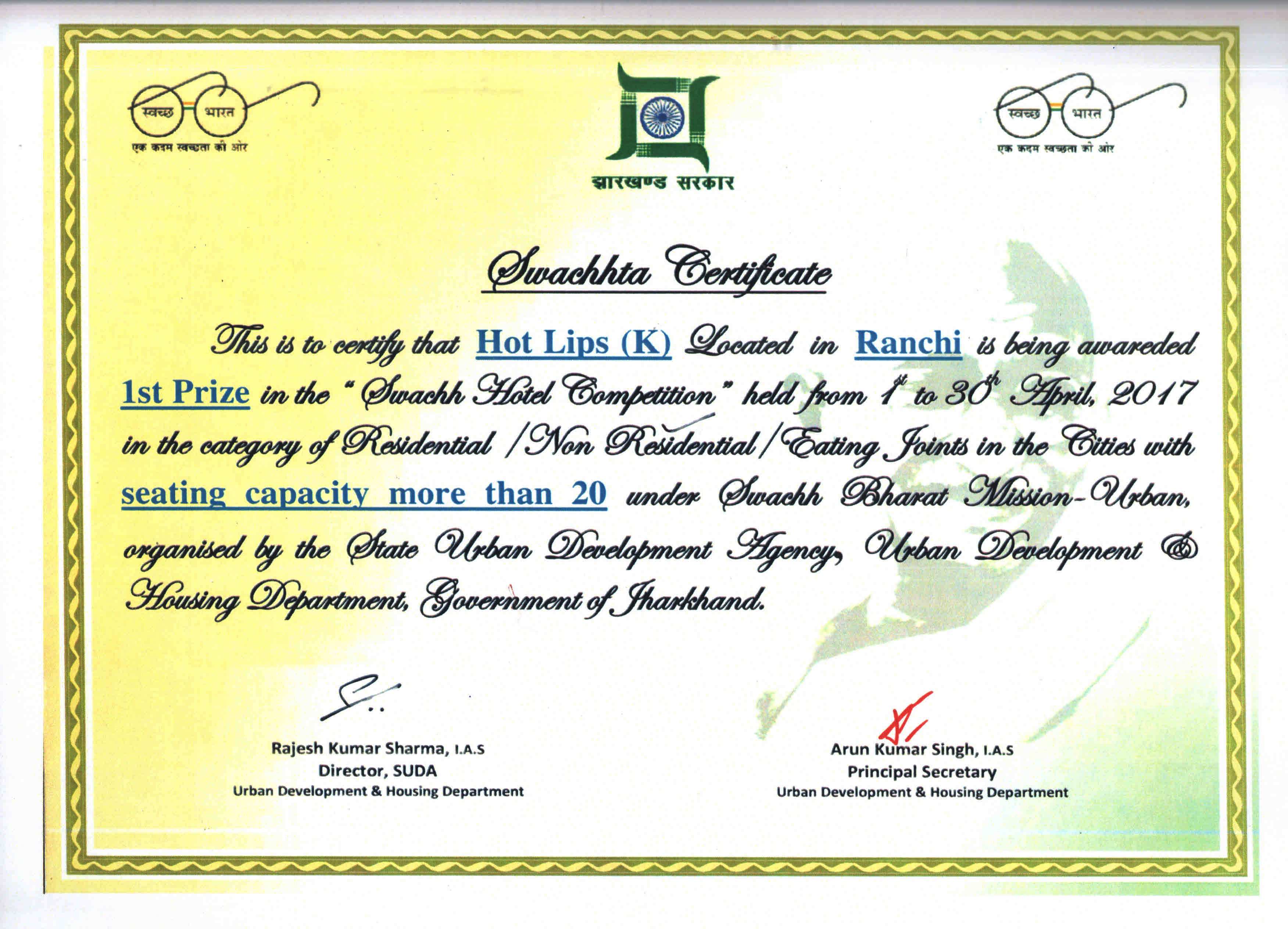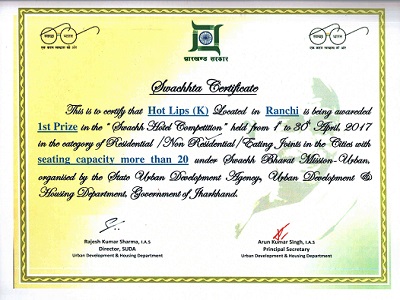Certificate Of Gokul Restaurant